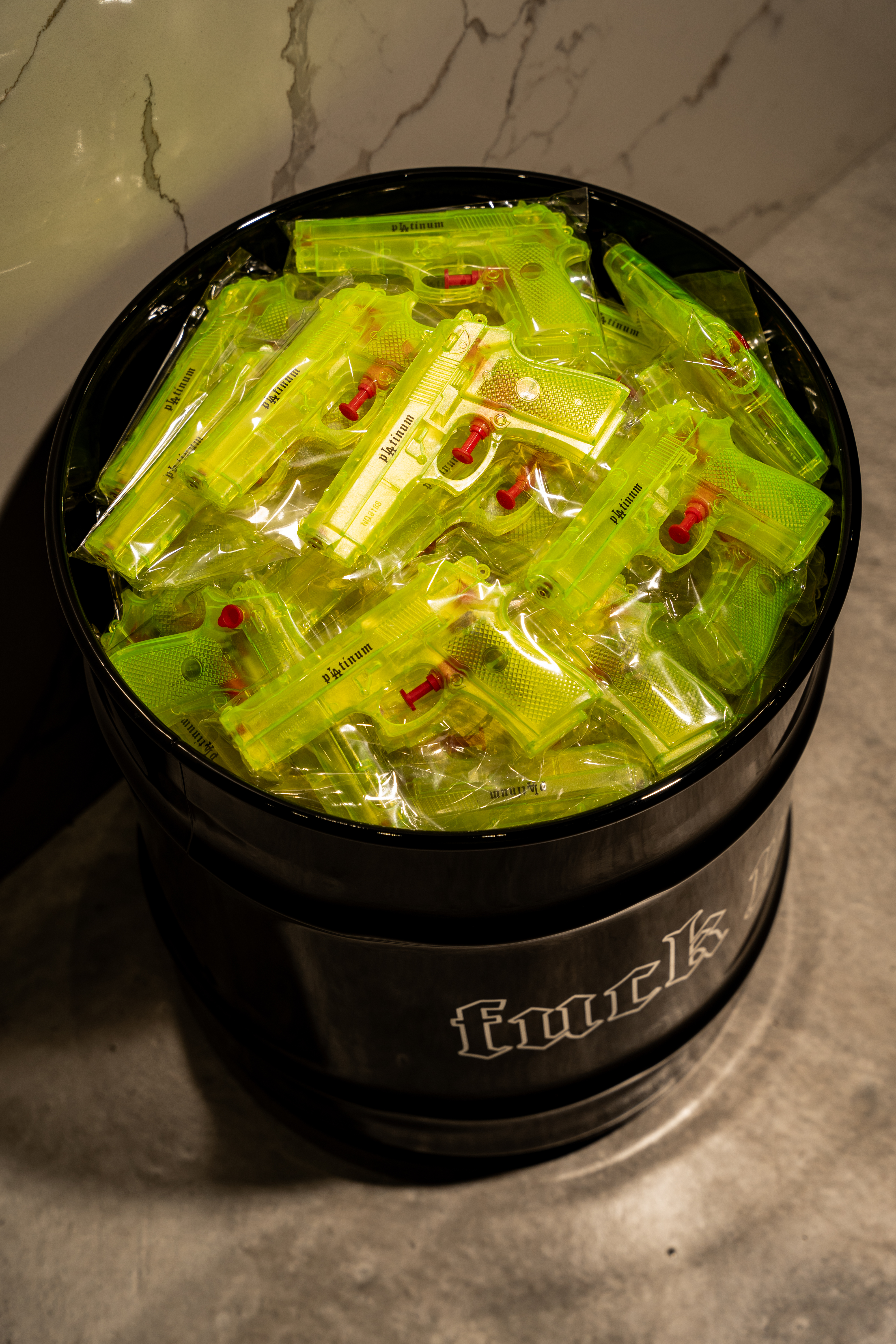 - MODEL ‘COCO’ WITH NEON YELLOW HAIR IS 5’10” 136LB WEARING A SMALL